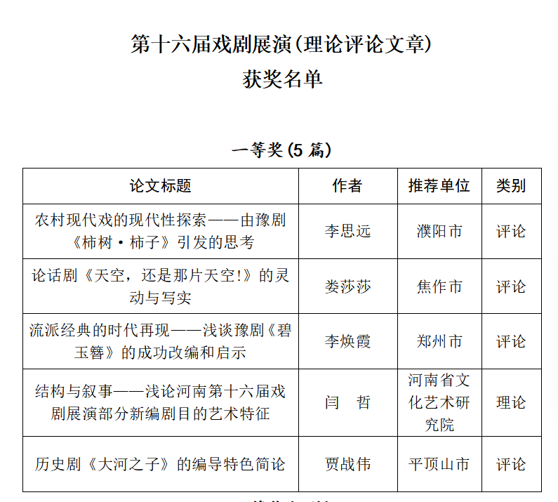 近日,河南省文化和旅游厅正式公示第十六届河南省戏剧展演获奖名单,英国365集团教师贾战伟报送的理论评论文章《历史剧<大河之子>的编导特色简论》荣获戏剧展演理论评论文章类一等奖,这是英国365集团在全省戏剧展演理论评论领域首次荣获该级别奖项。