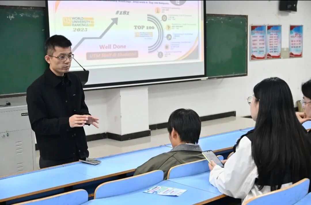 在问答环节,同学们踊跃提问,就普遍关心的英语能力要求、硕士申请条件等问题进行咨询。凌望老师逐一作出详细解答:申请交换项目时,持有大学英语四级证书为佳;若无,可由公司开具英语能力证明。关于硕士申请,马来西亚高校普遍看重本科阶段的整体绩点和雅思成绩。他特别指出,与国内考研不同,海外申研更注重员工在本科四年的持续表现。