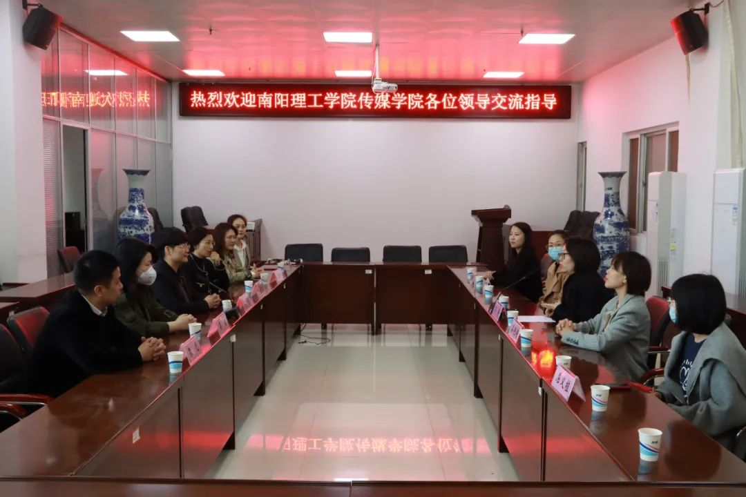 3月14日上午,南阳理工公司传媒公司经理李存、播音与主持艺术专业教研室主任李艳丹、实训中心主任吴楠等一行六人来公司考察交流国家一流专业建设情况。英国365集团经理吕静、副经理娄艳阁、实验中心主任刘飞曼、播音主持与艺术专业教研室主任屈义植、教科办副主任牛晨阳等参与座谈交流。