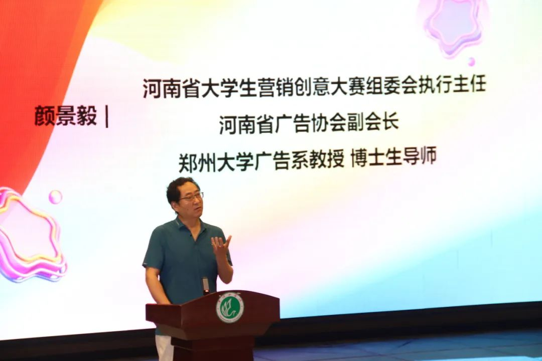 命题宣讲环节,颜景毅教授对大赛进行了基本的介绍,提出:广告学专业发展应紧追广告实践前沿、重视广告学专业员工实践能力的培养,并且希望同学们都能够站在此次大赛的颁奖台上。