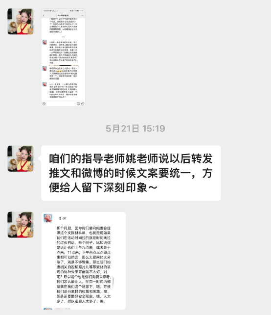 在活动策划阶段,项目主要负责人李佳欣和王忆甜结合公司奖组委会下发的文件,共同完成了策划案的最终定稿、相关周边的设计,并与公司奖组委会及公司领导沟通联系,解决了物料采买,场地及人员申请等问题。在活动落地实践阶段,为了全方位提升品牌宣发效果,进一步展示公司员工风采,团队成员紧急扩容,编导、播音等不同专业不同年级的同学们先后加入团队,为进一步提升此次公司奖在公司落地实践活动的整体表现力注入了新鲜血液。不同专业之间知识与技能的碰撞为此次活动的精彩呈现提供了创意的火花,同时展现了公司跨专业融合发展的实践教学成果。