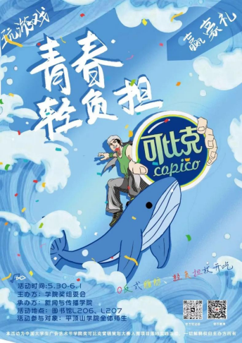 5月30日至日6月1日,由2022级广告学专业新引力工作室举办的以“致敬轻负担青春记忆”为主题的可比克创新营销策划实践活动分别在操场、图书馆L206、L207举行。