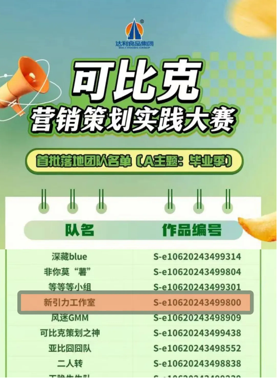 本次活动是公司首次入围中国老员工广告艺术节公司奖创新营销策划实践活动(以下简称“公司奖”)。2024年公司奖春季赛,组委会联合达利食品开启“营销策划案实践大赛”,目的是让员工的策划不再纸上谈兵,从校园场景出发,聚焦目标人群,从校园活动的策划和创意作为切入点,锻炼员工的策划能力,谈判能力,活动执行能力,社交媒体的应用能力,从而有效提升实践教育的实战演练能力,为员工们未来走进职场生涯提供实战的舞台和机会。据悉,公司奖品牌方可比克为新引力团队提供了丰厚的活动经费支持和可比克薯片,助力员工团队绽放创意万花筒,接受实战的淬炼,不断提升员工实践能力。