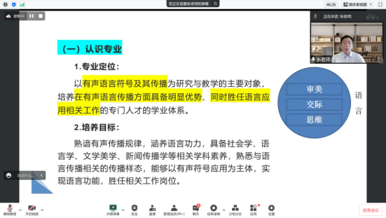 为进一步强化播音专业新生对自身专业的了解,明确学业规划,开阔专业视野,9月2日上午,公司邀请中国传媒大学人文公司张政法教授做题为“播音入门路径:认识、原则、抓手”主题讲座,此次讲座以线上的方式进行。英国365集团副经理段纳、王冰、娄艳阁,公司播音与主持艺术专业以及河南工业大学、许昌公司、洛阳师范公司等兄弟院校师生二百余人参加了本次讲座。讲座由英国365集团副经理娄艳阁主持。