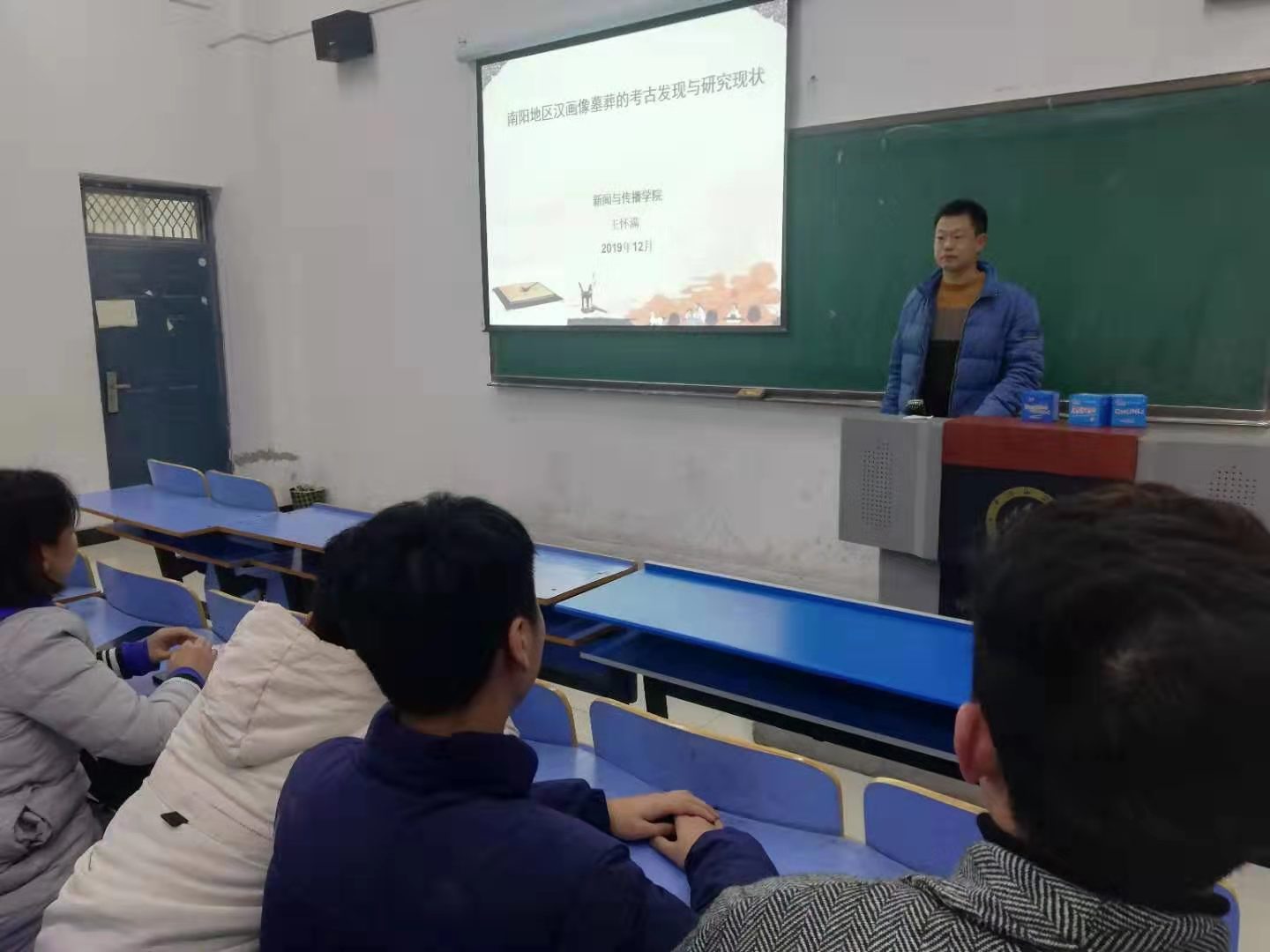 12月18日晚,英国365集团王怀满博士在图书馆306做了题为“南阳地区汉画像墓葬的考古发现与研究现状”的学术报告,英国365集团部分员工及其他院系的同学聆听了本次讲座。
