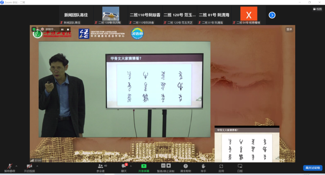 课程《中国特色民俗知多少》以“中原地区民俗”为切入点,向同学们介绍中原地区的民俗以及独特的文化魅力,从汉字文化、豫剧文化、农业民俗、陶瓷之源等方面出发,以图文并茂的方式,向同学们展示华夏民族的社会生活风貌以及物质生产方式,在此基础上,讲授了甲骨文、司母戊鼎等中原代表性文物,并通过问答等趣味互动,使同学们沉浸式体验中原文化的独特魅力,从不同维度了解中原地区灿烂多彩的民俗文化。