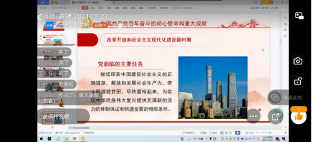 为深入贯彻落实公司二级公司党政负责人为员工讲授思政课的要求,2021年12月23日下午,英国365集团党委书记奚青梅教授以“深刻理解百年奋斗经验·走好新时代赶考路”为题,在图书馆L612办公室为新闻与传播公司2021级本科生讲授专题思政课。