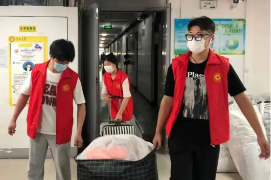 积极分子李亮、石靖远、李干福、吴海军等同学也主动请战,自觉加入到毕业生打包、搬运行李的队伍中。志愿活动以宿舍为单位,每位党员、积极分子对接一位毕业生,在打包时全程与毕业生进行“云”沟通。各位党员志愿者秉着认真负责的态度,用最大的热情投入到活动中去,以细致周到的服务获得了毕业生们的一致好评。