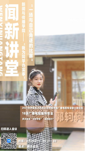 最后,郭轲轲同学鼓励大一、大二的学弟学妹们尽早树立坚定的目标,制定一个切实可行的规划,不断提升自己,在最美好的青春做出最无悔的奋斗。