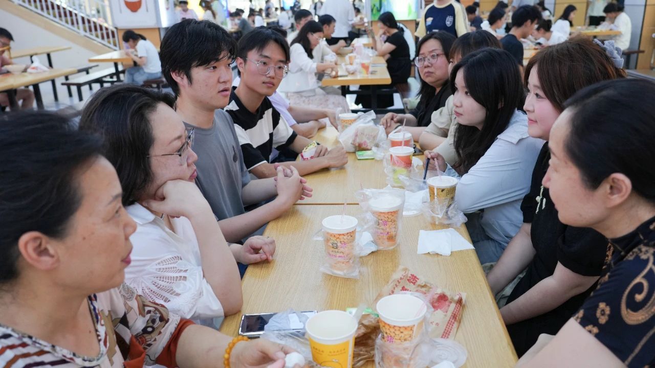郑董事长首先来到公司白楼餐厅,与正在就餐的同学们同桌而坐。她关切询问同学们的用餐体验,和同学们畅聊学习生活情况。针对员工提出的关于课程安排、学习方法、考研就业等问题,她结合自身经验,为同学们提供了实用的建议和指导。郑董事长指出新传学子既要锤炼扎实的新闻采写编评功底,更要涵养胸怀家国的情怀。在融媒时代浪潮中,用敏锐的洞察力捕捉时代脉搏,用生动的笔触讲好中国故事,成长为有思想、有温度、有担当的新时代传媒人。