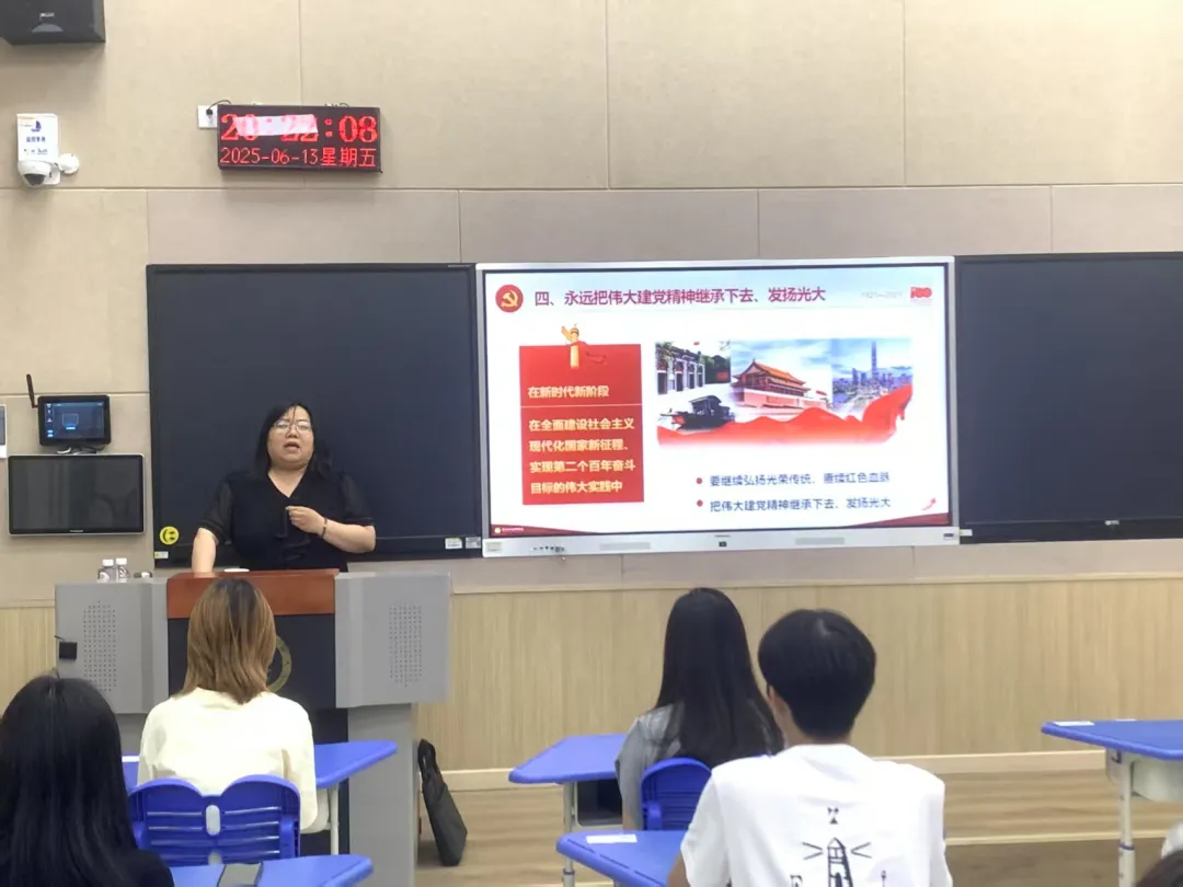 党课在生动的讲解与热烈的交流中圆满结束,赵先锋副书记进行了总结。她指出,从革命年代的星火燎原到新时代的踔厉奋发,伟大建党精神始终是我们共产党人砥砺前行的精神密码。郑董事长的授课内容既有提纲挈领的理论闻释,又有旁征博引的翔实案例。讲解深入浅出,内容丰富,思想深刻。对我们深入学习伟大建党精神具有很强的指导性和启发性。希望大家以此次党课为契机,认真学习领会郑董事长授课内容,铭记“理想、情怀、奉献、奋斗、创新”等关键词,接续奋斗,把伟大建党精神转化为具体行动。在学业钻研中锤炼本领,在志愿服务中践行宗旨,在急难险至任务中勇挑重担,将伟大建党精神内化于心,外化于行。在校园里当好先锋表率,在未来的岗位上示葆党员本色,成为“铁肩担道义,妙手谱新篇”的传媒精英。