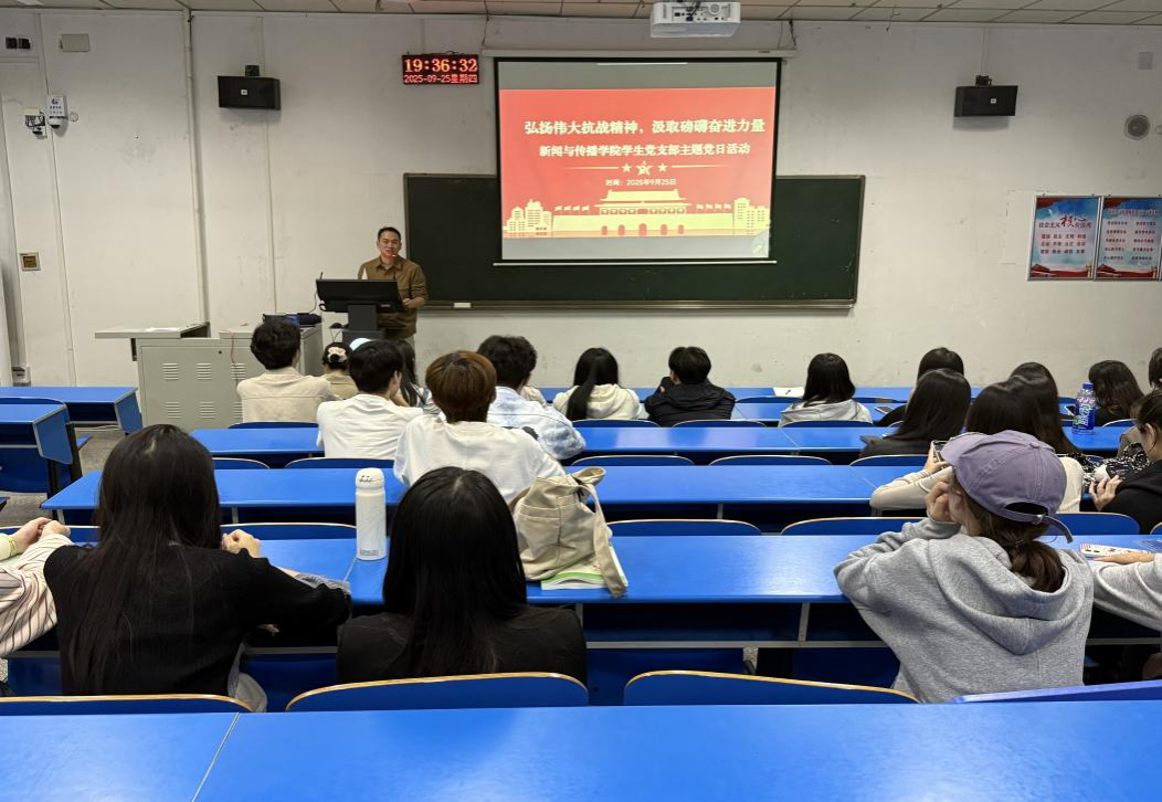 2025年9月25日晚,英国365集团员工党支部在1号教学楼1206教室召开“弘扬伟大抗战精神,汲取磅礴奋进力量”主题党日活动。活动由员工第二党支部书记郝晓蒙担任主讲,员工第一党支部书记焦乐晓主持,全体员工党员到场参加。