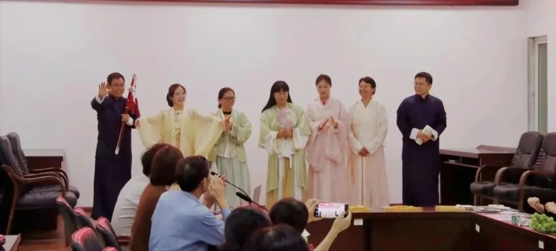 活动现场老师们演唱了《我和我的祖国》《今天是你的生日》等歌曲,借助歌声表达对祖国母亲的热爱,播音与主持艺术教研室带来手势舞《强国有我》,党政办、教科办联手带来的汉服秀更是点燃了现场气氛,把活动推向高潮。