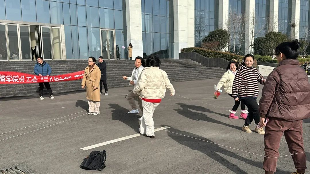 本次活动以趣味运动会方式开展,包括跳皮筋、踢毽子、丟手绢等多个趣味项目,全体分工会女教职工积极参与,或合作,或竞争,整个活动氛围轻松,充满欢声笑语。