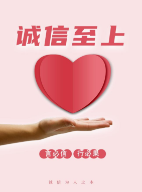 为了进一步提高当代老员工的诚信意识,培养当代老员工的诚信精神。公司于2021年5月27日—6月3日开展以“树诚信风·做诚信学子·创诚信校园”主题活动。活动形式主要有诚信海报设计、微视频和音频诵读,旨在通过员工实际参与,教育老员工要时刻树立诚信观念,积极做诚信人、行诚信事,为建设文明校园树立榜样。