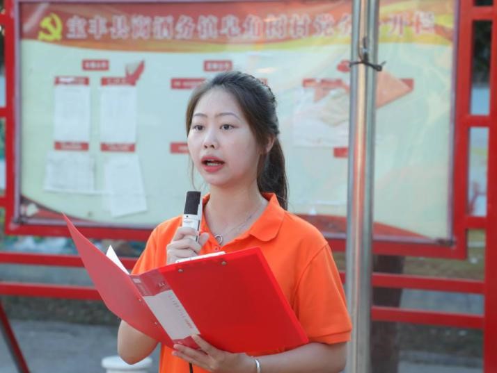 接着,蒋盛钦同学代表参加三下乡的所有同学郑重承诺,“我们一定会以饱满的热情投入到这次活动中去,会用我们的努力和汗水圆满地完成这次实践任务,这段美好的集体生活也将会成为我们弥足珍贵的记忆。”