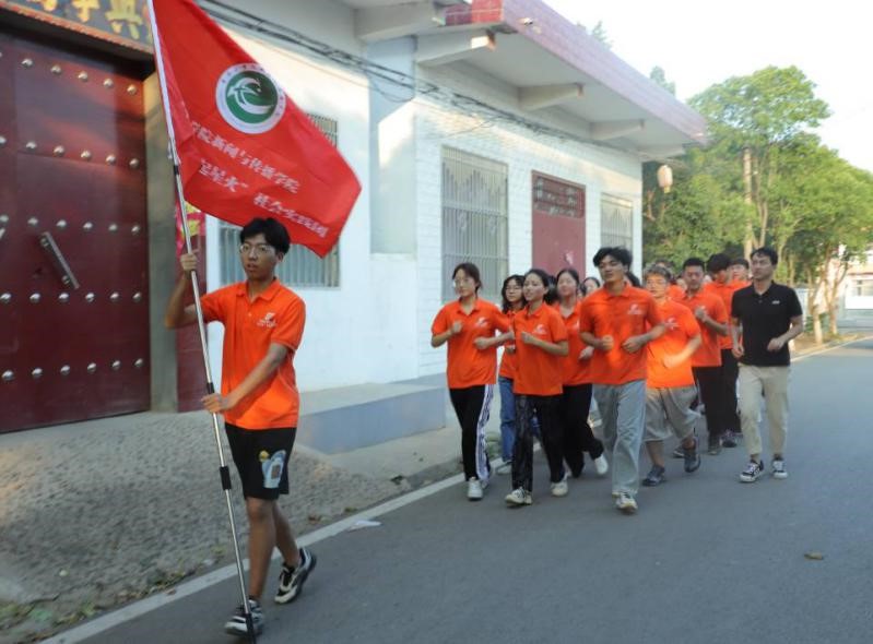 “永远跟党走,奋进新时代!”郝晓蒙老师带领我们喊着响亮的口号,沿路的村民们投来赞许的目光。步伐声、口号声、喘息声,为夏季清晨的美丽皂角树村增添了新的活力与色彩。晨跑结束后,师生们以饱满的热情和高昂的斗志投入到一天的实践工作中。