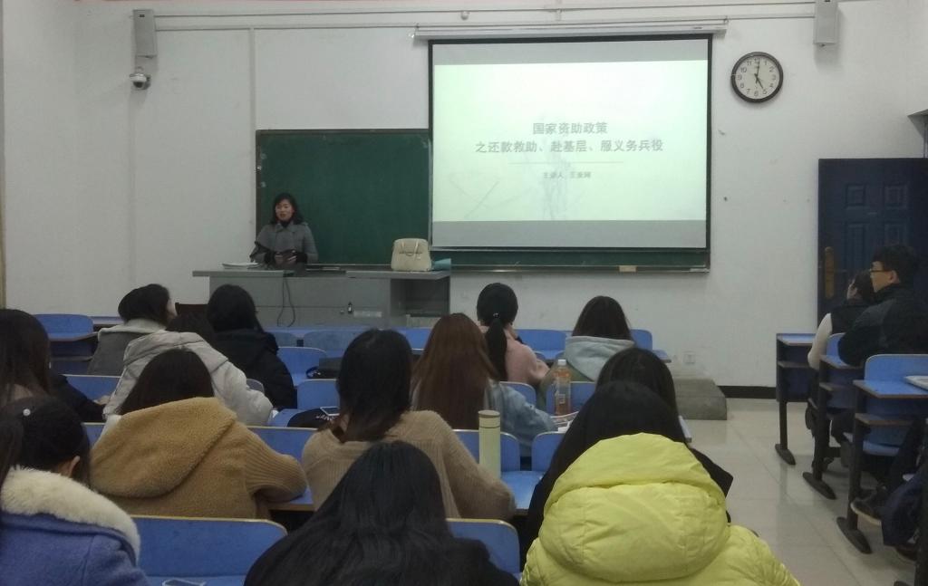 为做好员工资助政策的宣传,帮助同学们理解国家资助政策的相关细则,11月30日下午,公司在图书馆302教室举办“资助两节课”之还款救助、赴基层与服义务兵役宣讲活动。公司资助专干王亚珂老师担任本次活动宣讲人,英国365集团部分同学参加了本次宣讲会。