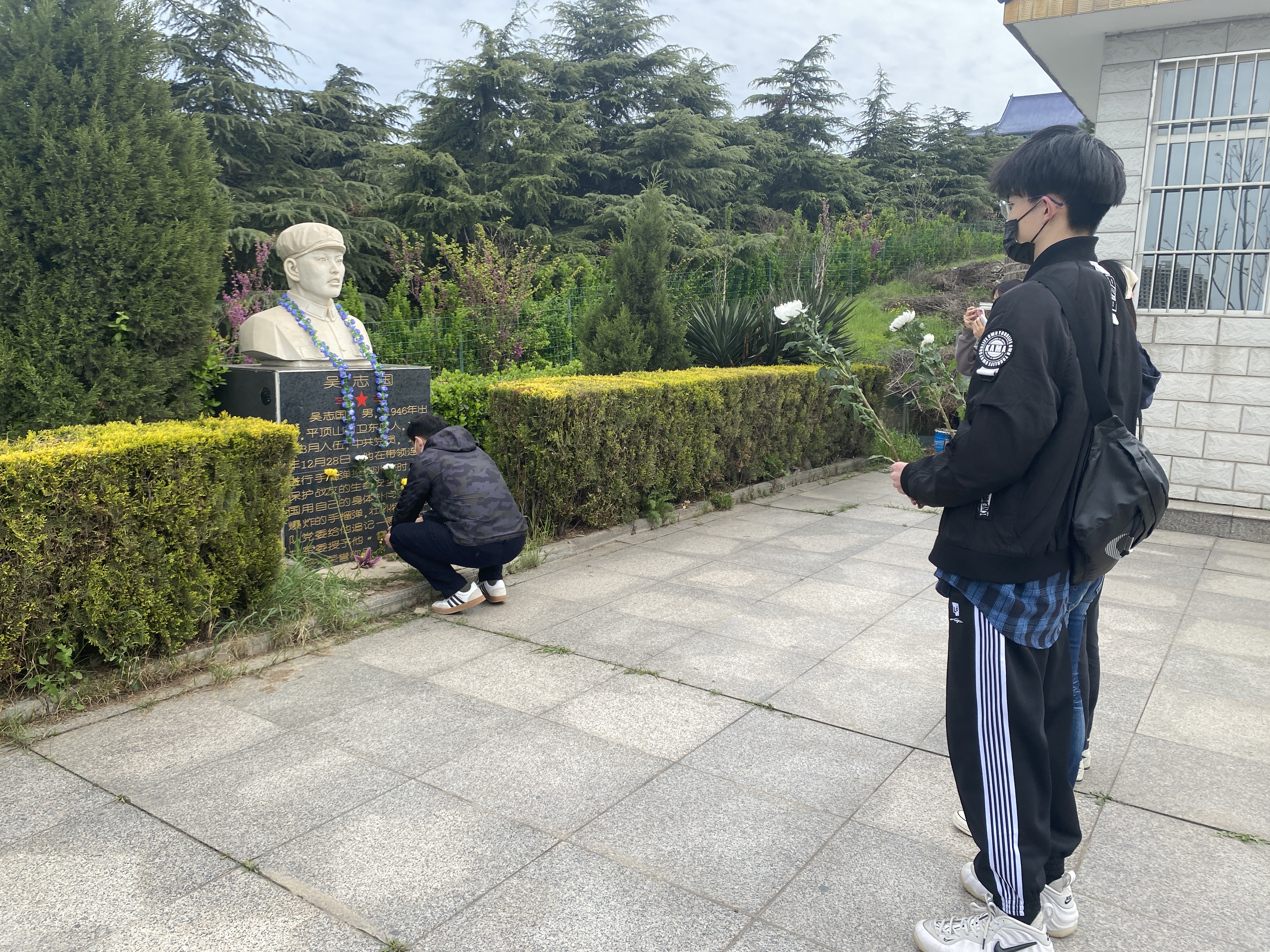 革命先烈永垂不朽,民族精神代代相传,党恩不能忘,精神谱系需代代相传,铭记于心。我党的革命丰硕成果是来之不易的,是千千万万中华儿女用血肉筑起的长城。在吴志国烈士纪念碑前,以郝晓蒙老师为代表,师生集体鞠躬并默哀,随后依次献上鲜花以表达悼念和哀思。郝晓蒙老师还带领员工代表参观革命烈士陈列馆、革命烈士陵墓等,在参观过程中郝晓蒙老师为同学们简单地介绍了先烈事迹,希望同学们学习革命先烈艰苦奋斗、不怕牺牲的精神,并鼓励当代青年要树立正确的世界观、人生观、价值观,更要在实现中华民族伟大复兴的道路上坚定理想信念,努力成为中国特色社会主义事业的合格建设者和可靠接班人。