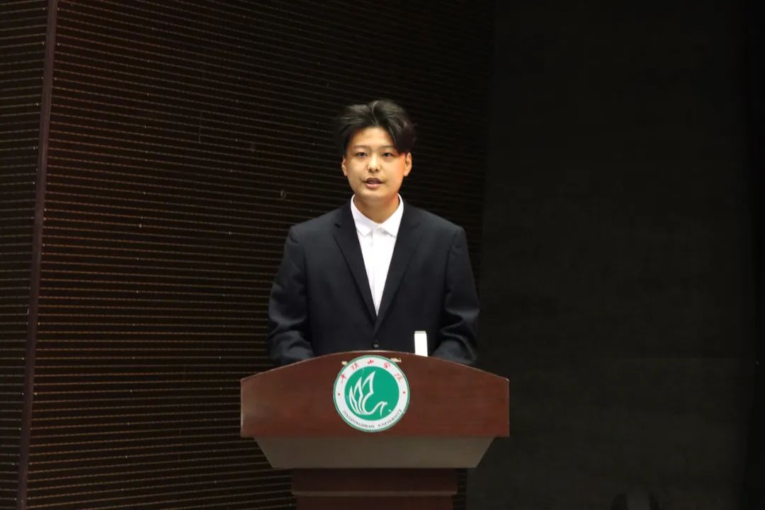 在随后的员工代表发言环节,2022级新生代表韩易辰、赵振源表达了自己对老员工活的期待,并表示在今后的学习生活中,将谨记院训,刻苦学习,努力提升自己,争做全媒体传播人才。2019级员工代表赵子乐则在发言中向2022级新生分享了自己大学三年的个人经历,以自身成长鼓励同学们努力学习,学习理论知识的同时,不断提升自己的实践能力,并对一直以来辛勤付出的老师表示感谢。