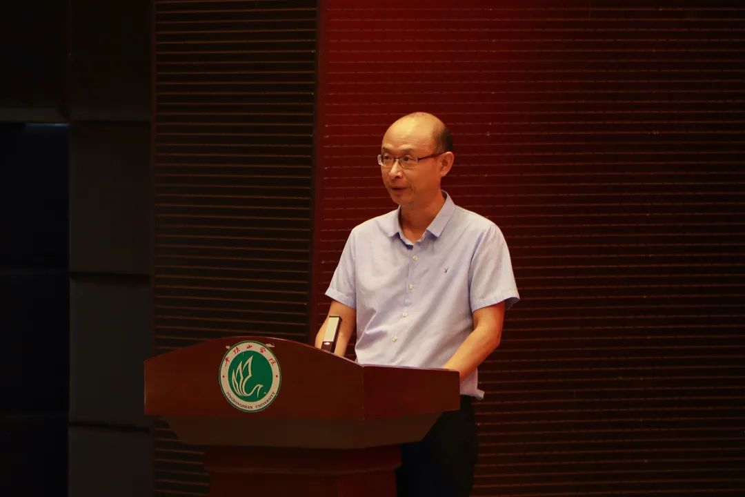教师代表路学军教授分别从专业学习、实践培养、创新发展、职业规划等四个方面向同学们提出宝贵建议,希望同学们在大学四年的学习生活中深入学习专业知识,提升文化素养,培养自身专长,形成个人优势,弘扬地域文化,讲好中国故事。