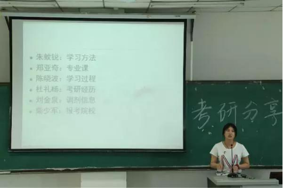陈晓波为同学们分享了自身的考研过程。她建议备考的同学们首先要有明确的方向,然后坚定地朝着目标努力。刘金泉结合自身的考试经历强调了展示优势、沟通交流、复习备考和良好心态四个方面在考研过程当中的重要性。