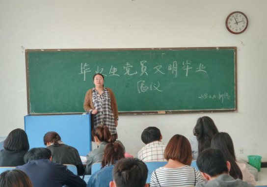 赵珊珊对毕业生提出殷切期望。她指出,作为一名党员,首先要增强党员意识,不断加强理论学习,用赤诚之心追逐梦想,用坚持不懈砥砺前行,扣好自己在工作岗位上的第一粒扣子,将“党员意识”落实到一言一行上。其次要牢记党员身份,发挥模范带头作用。他鼓励同学们发挥专业优势,立足岗位做贡献;把握发展的机遇,坚持创新,在创新中创一流,力争成为行业内的标杆,成为行业内的排头兵和领头羊。此外在奋进的道路上,毕业生党员不管身在何处,都要严守纪律规范,不忘共产党人的“初心”和“使命”,将“为中国人民谋幸福,为中华民族谋复兴”当作自己的座右铭,激励着自己前进。