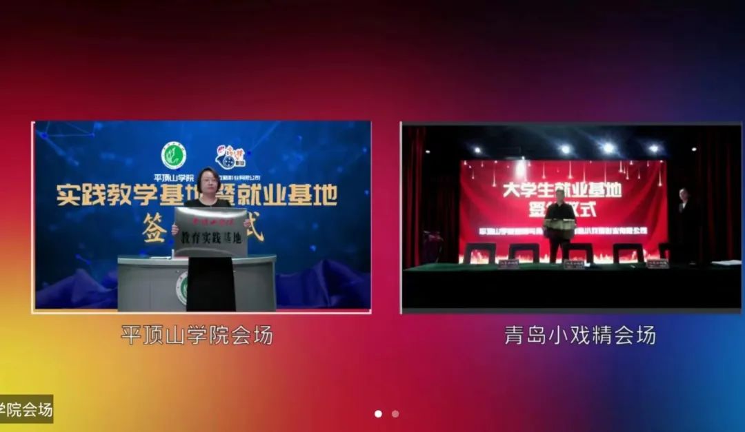 随后,双方通过网络,完成签约仪式并进行云上合影。今后,公司将定期选取对应专业师生到青岛小戏精影业有限公司进行专业实践。本次实践教学基地、就业基地双重签约,有助于校企双方实现资源共享,优势互补,共同发展,有助于公司推进实习就业一体化模式,拓宽员工实习就业渠道,实现高质量人才培养和高质量就业,同时对员工尽快融入行业、服务社会有重要意义。