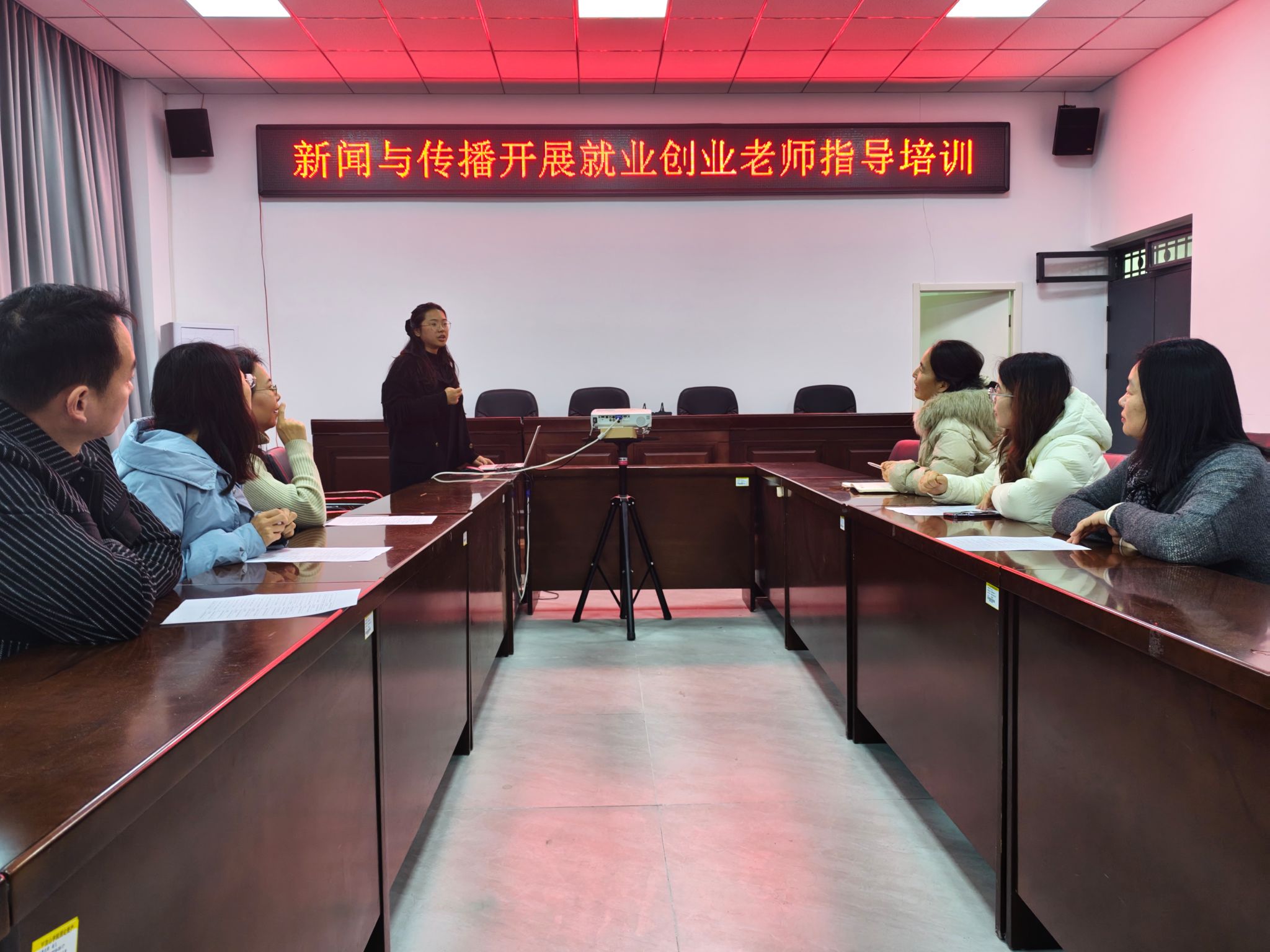 此次培训紧扣新闻与传播学科专业特色,聚焦当前就业创业新形势、新政策,围绕队伍建设核心目标,精心设计了培训内容。公司请就业创业专干许然然老师,通过专题讲座、案例分析、互动研讨、经验分享等多种形式,为参训教师带来了全方位、多层次的指导。