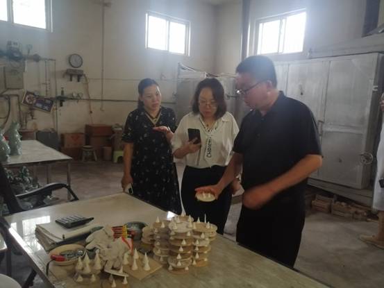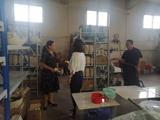 随后,奚青梅、吕静一行又来到汝官窑遗址宝丰清凉寺,走访宝丰清凉寺宣和汝瓷文化传播有限公司等汝瓷文化企业,深入厂区、库房、门店等,与镇文化工作干部、企业负责人、汝瓷从业人员交流,了解乡镇汝瓷文化企业在陶瓷制作、器型设计、文化传媒等方面的人才需求,并详细介绍公司专业建设及毕业生的实际情况,并希望与走访企业紧紧围绕毕业生实习就业进一步达成合作协议,共建公司与企业互惠共赢的合作平台。