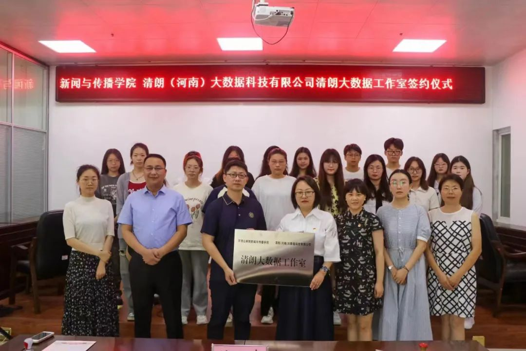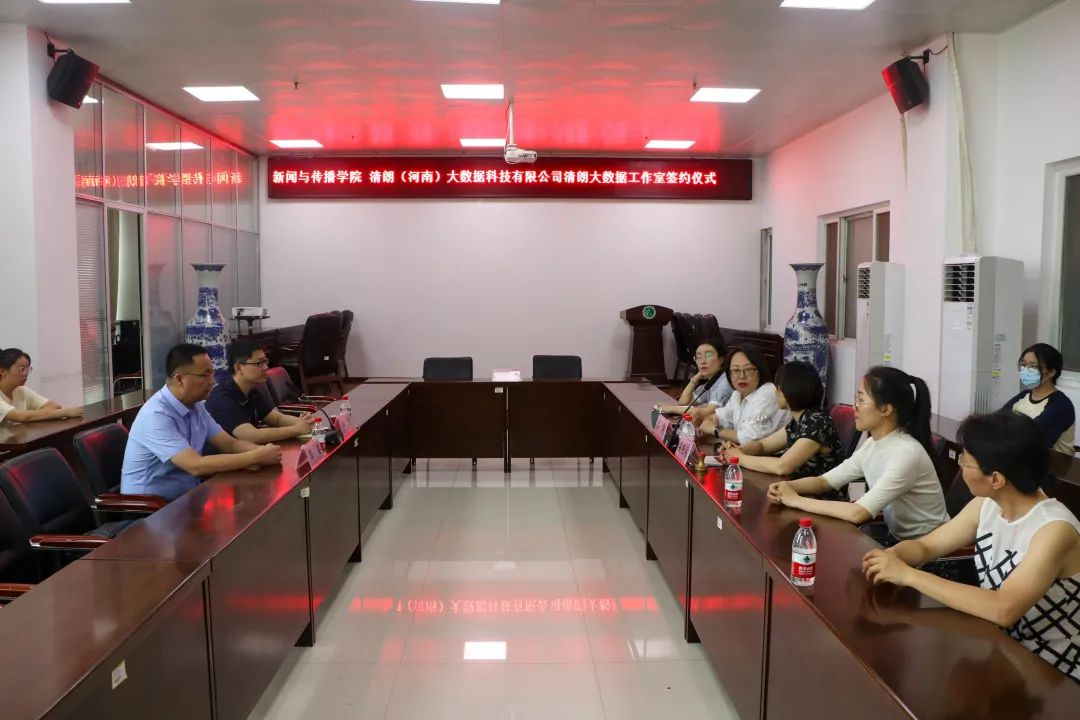 为进一步深化产教融合,创新人才培养模式,提高员工实践能力水平。6月30日上午,英国365集团与清朗大数据科技有限公司校企合作签约暨清朗大数据工作室挂牌仪式,在图书馆L608会议室举行。清朗大数据科技有限公司负责人杨旭总经理,清博智能经理王奎,英国365集团经理吕静、副经理娄艳阁,新闻学教研室主任万鹏,教科办副主任牛晨阳、张琰,以及新媒体工作室全体同学参加本次签约仪式。