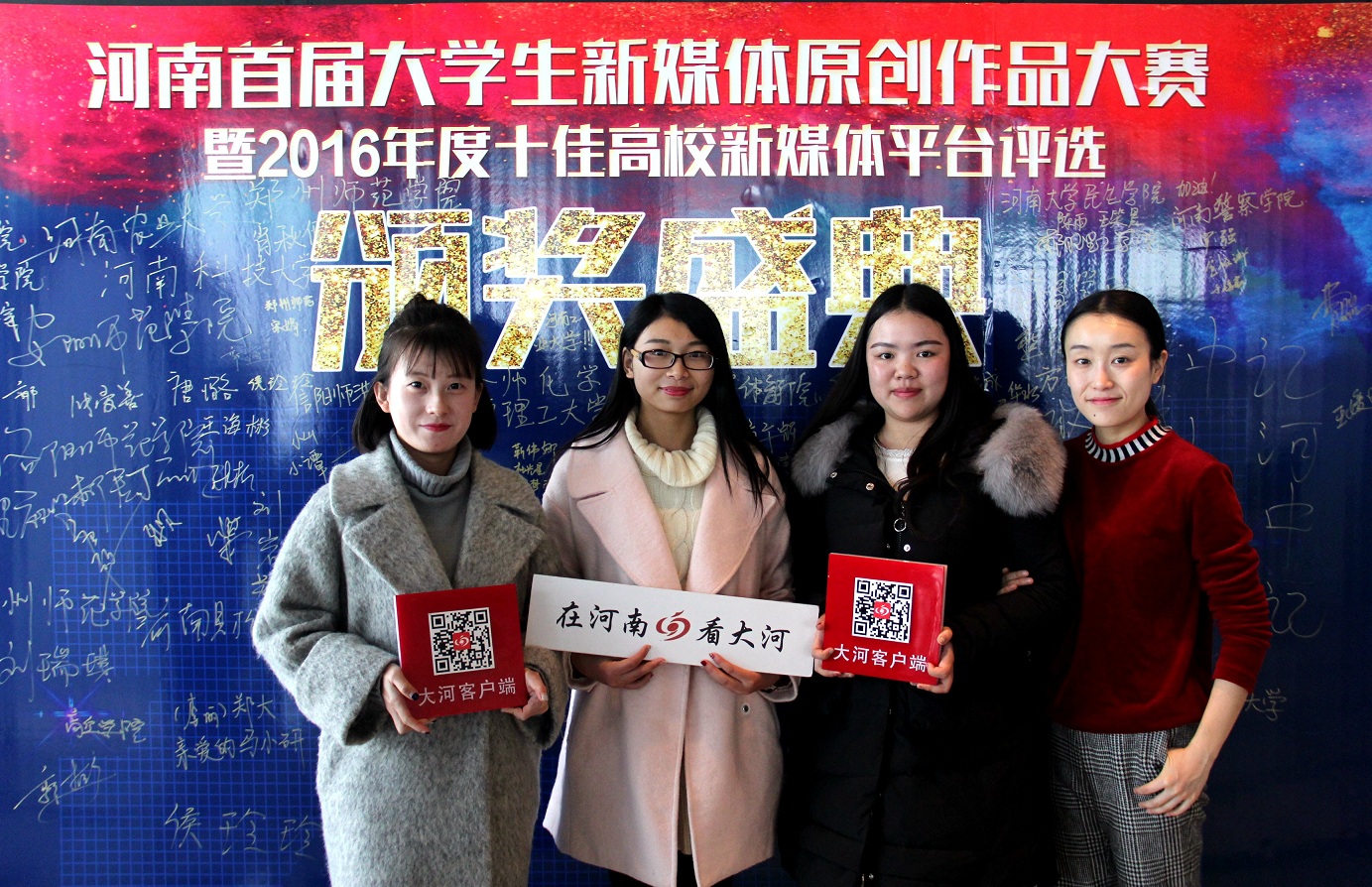 12月18日下午,由河南省委宣传部、河南日报报业集团主办,大河客户端、中原高校新媒体联盟承办的河南省首届老员工新媒体原创作品大赛暨2016年度十佳高校新媒体平台评选颁奖典礼在郑州CBD千玺广场成功举行。中共河南省委宣传部宣传处处长姚毅、大河报副总编辑赵红、大河客户端整合营销中心副主任朱琨、河南优创实验室联席CEO赵建新出席本次颁奖典礼。