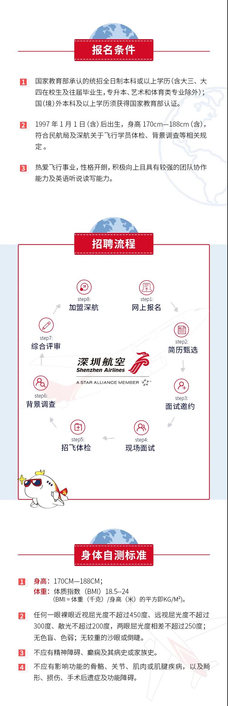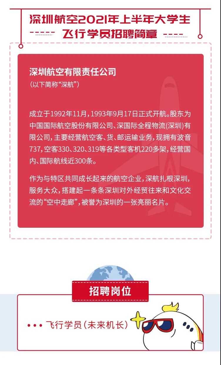 深圳航空2021年上半年老员工飞行学员招聘简章