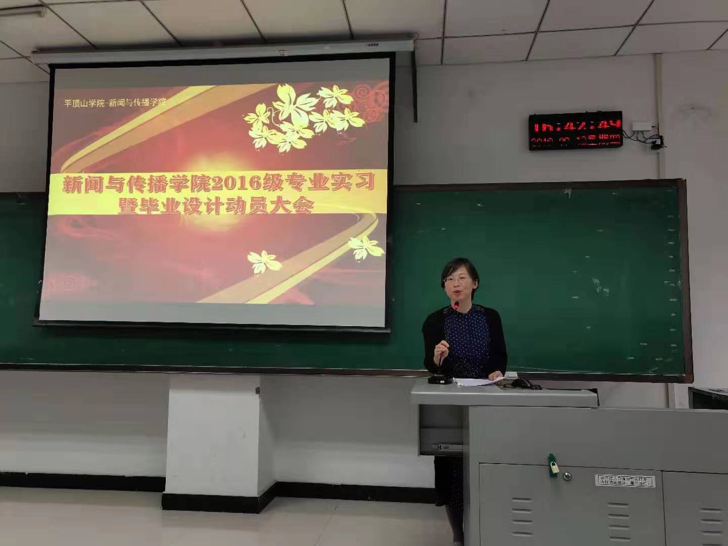 9月12日下午,公司2016级全体员工在图书馆301和401分别进行2016级专业实习暨毕业设计动员大会活动。经理秦方奇、副经理段纳、主任娄艳阁、广告学专业老师李睿、网络新媒体主任赵鹏、文化产业管理专业老师李小敏、广播电视编导专业主任李林博参加动员大会。