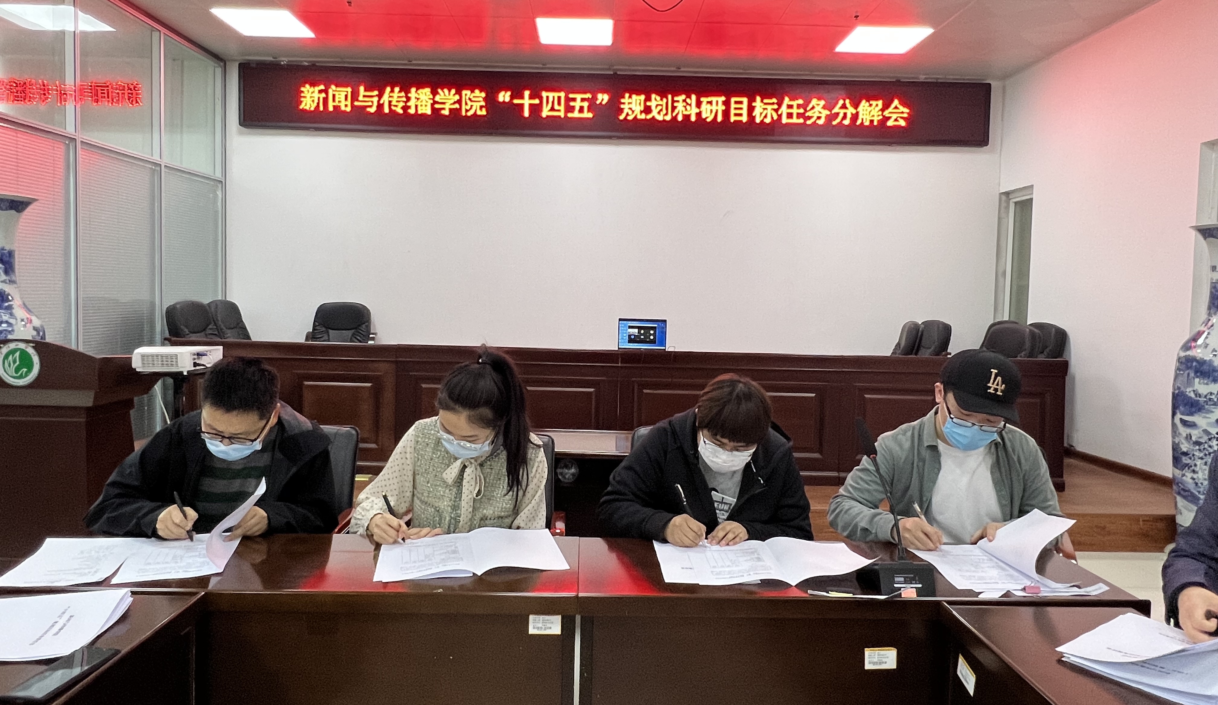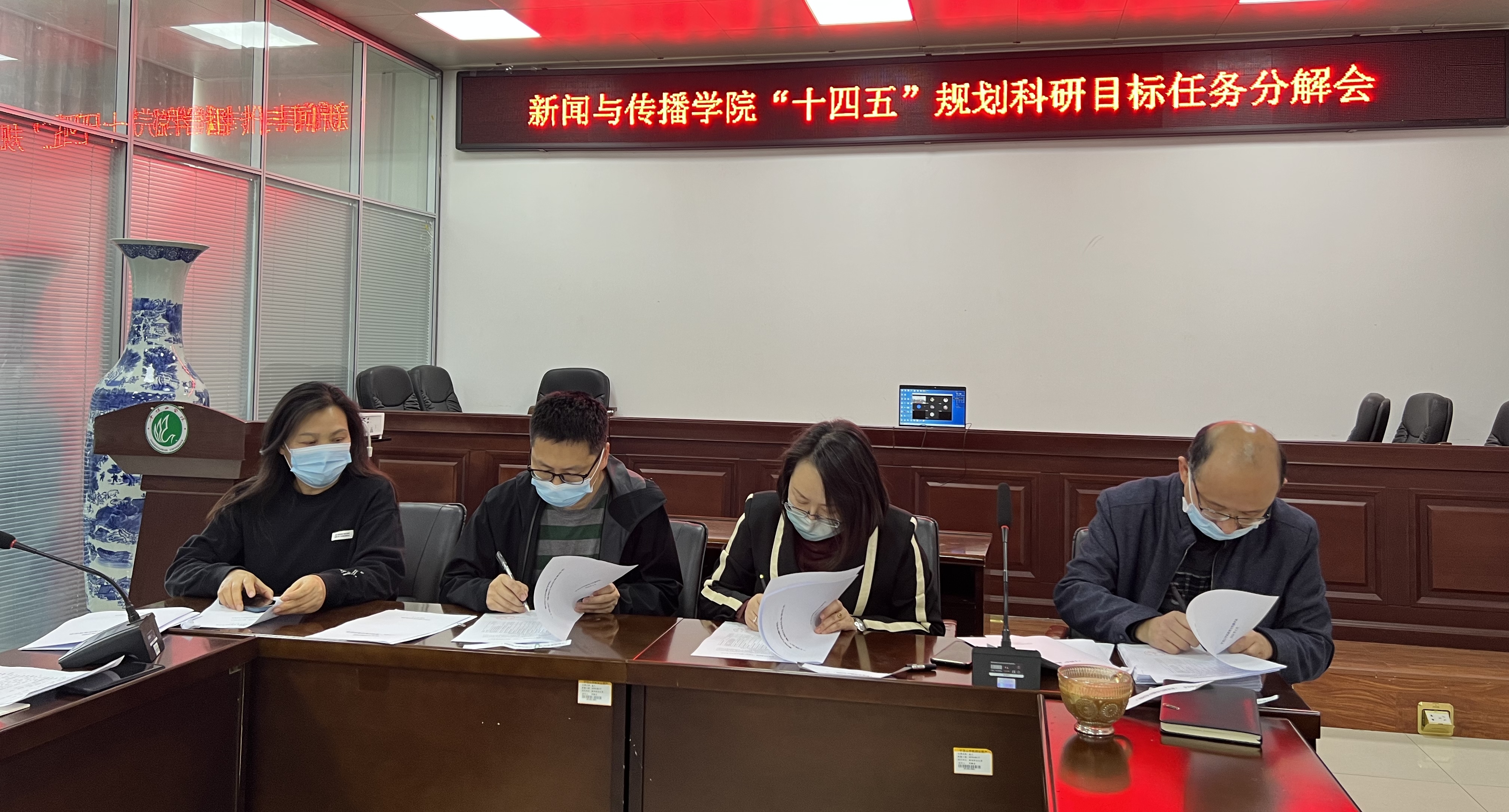 最后,党委书记奚青梅就任务分解及目标完成提出两点要求,一是要求全院教师充分认识完成“十四五”规划目标科研任务的重要意义,高度重视,积极行动,确保新传院“十四五”期间各项科研任务如期圆满完成;二是要求大家抓住机遇、齐心协力、团结一致,为实现新传院硕士点建设的突破做出自己的积极努力和贡献。