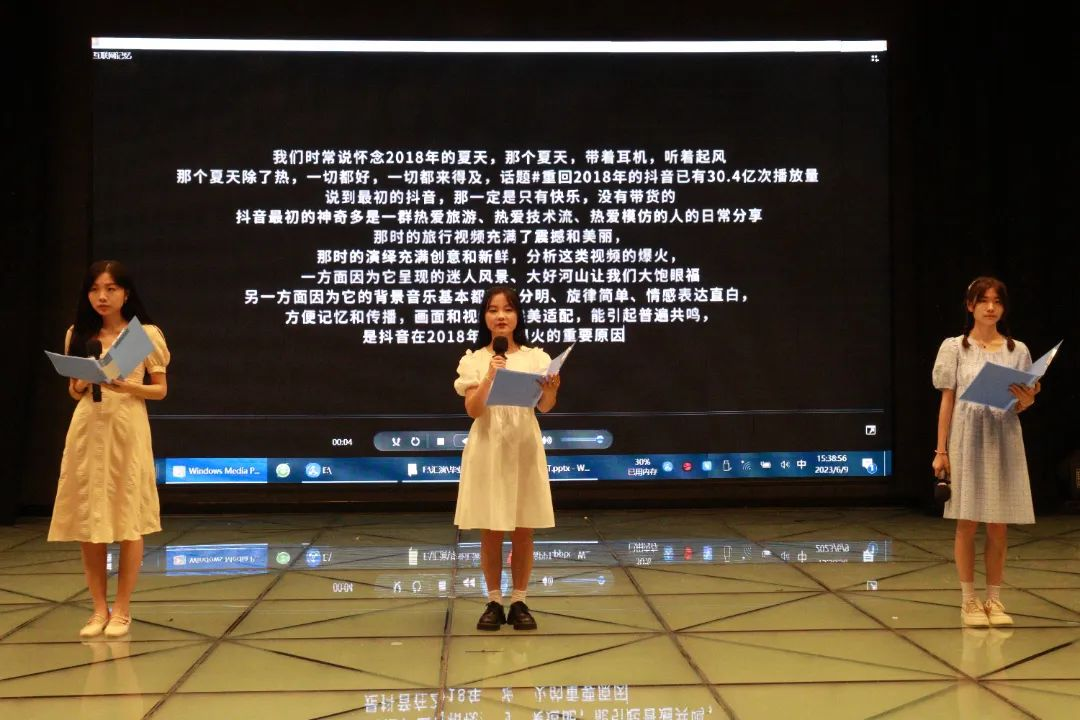 在创作联展进行中,同学们借助直播、深度报道、新媒体矩阵、舆情分析、数据新闻、舞台剧、纪录片等形式来展示其三年来掌握的扎实的新闻传播理论知识及新媒体技术的运用能力,在舞台上肆意挥洒着自己的青春活力。在三年的学习生涯中,有不少同学获得多项荣誉,展现了同学们认真奋进的求学态度和公司经年积累形成的艺术生态和人文素养。